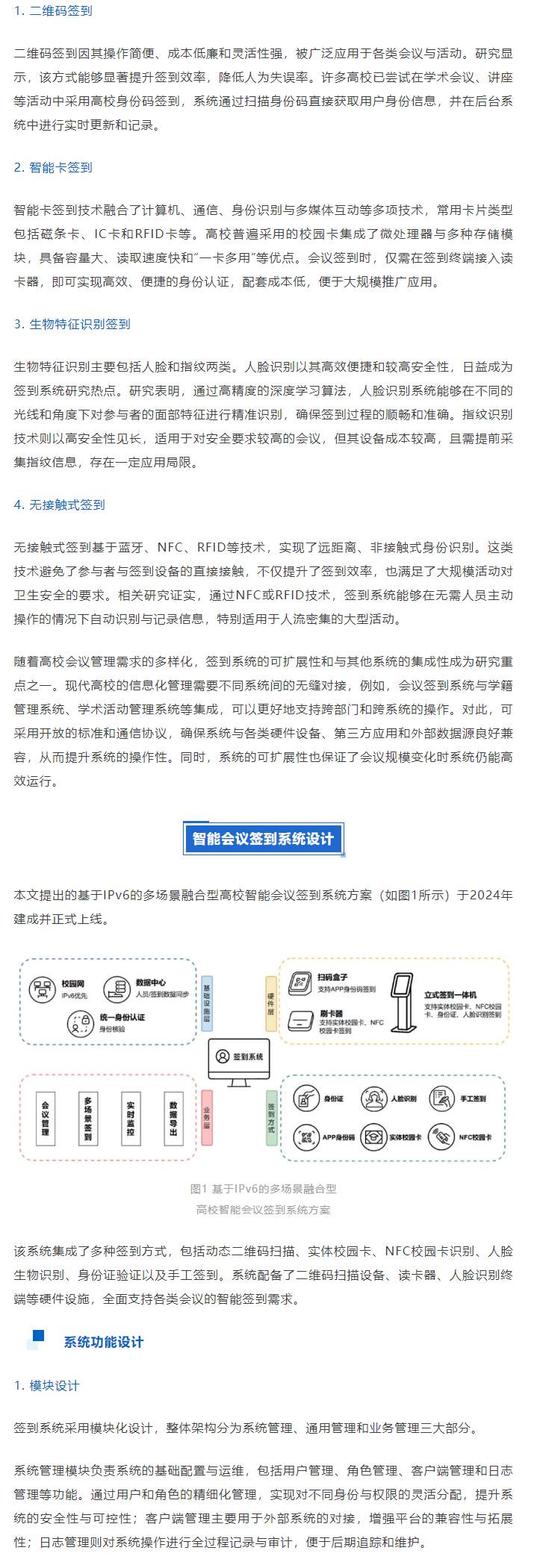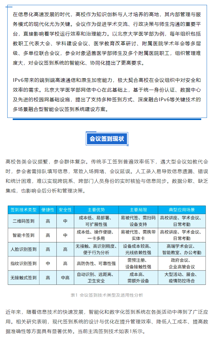 案例分享丨基于IPv6的多场景融合型高校智能会议签到系统